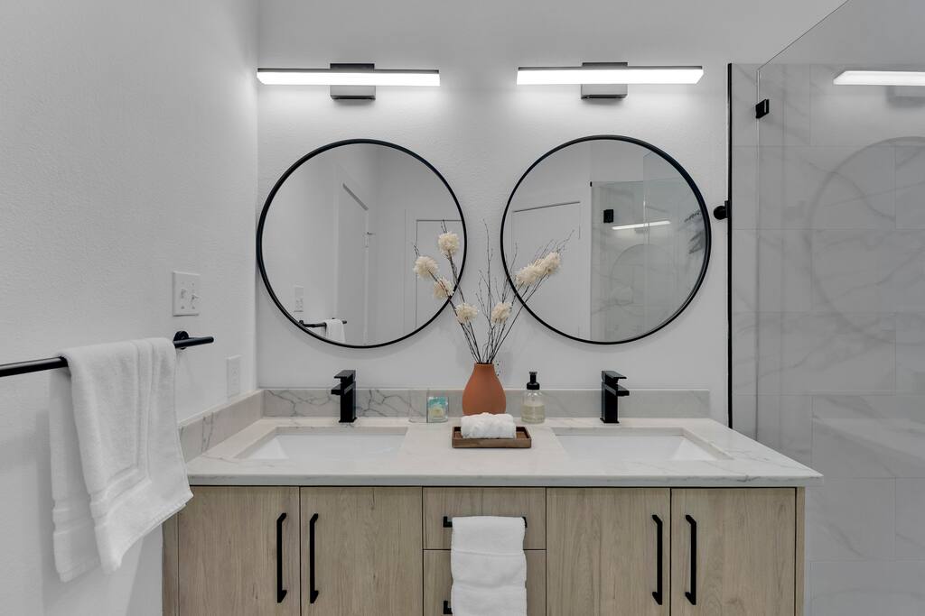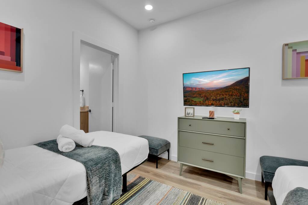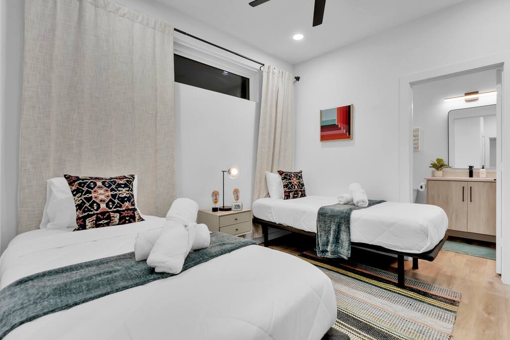 Sleeps 12 across 6 bedrooms w/ en-suite full baths 6 full bathrooms + 2 half baths 2 game rooms: pool, darts, basketball, arcade 2 hot tubs with ambient lighting + robes Tonal smart gym available (added fee) Full kitchens + dining setups in both units Outdoor lounge areas + 2 washers/dryers Creative reset station w/ journals & affirmations Tea & cold-pressed juice delivery available (added fee) 2 game rooms: pool, darts, basketball, arcade 2 hot tubs with ambient lighting + robes Tonal smart gym & free weights Full kitchens + dining setups in both units Outdoor lounge areas + 2 washers/dryers Creative reset station w/ journals & affirmations Tea & cold-pressed juice delivery available